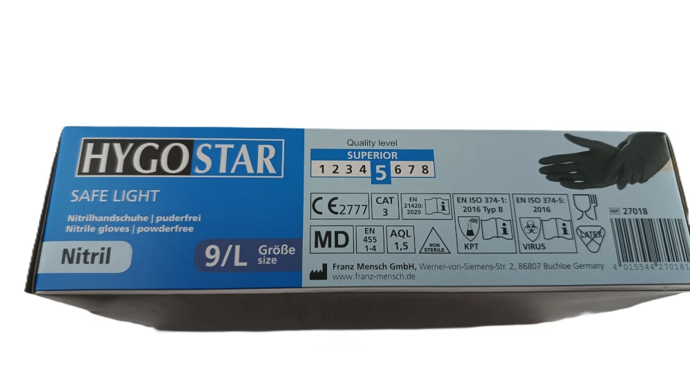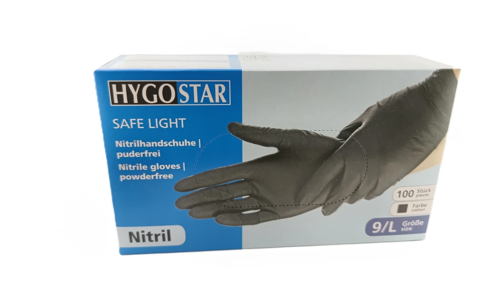 HYGOSTAR | Einmalhandschuhe | Schwarz | Größe 9/L | Nitril | Puderfrei | 100 Stück