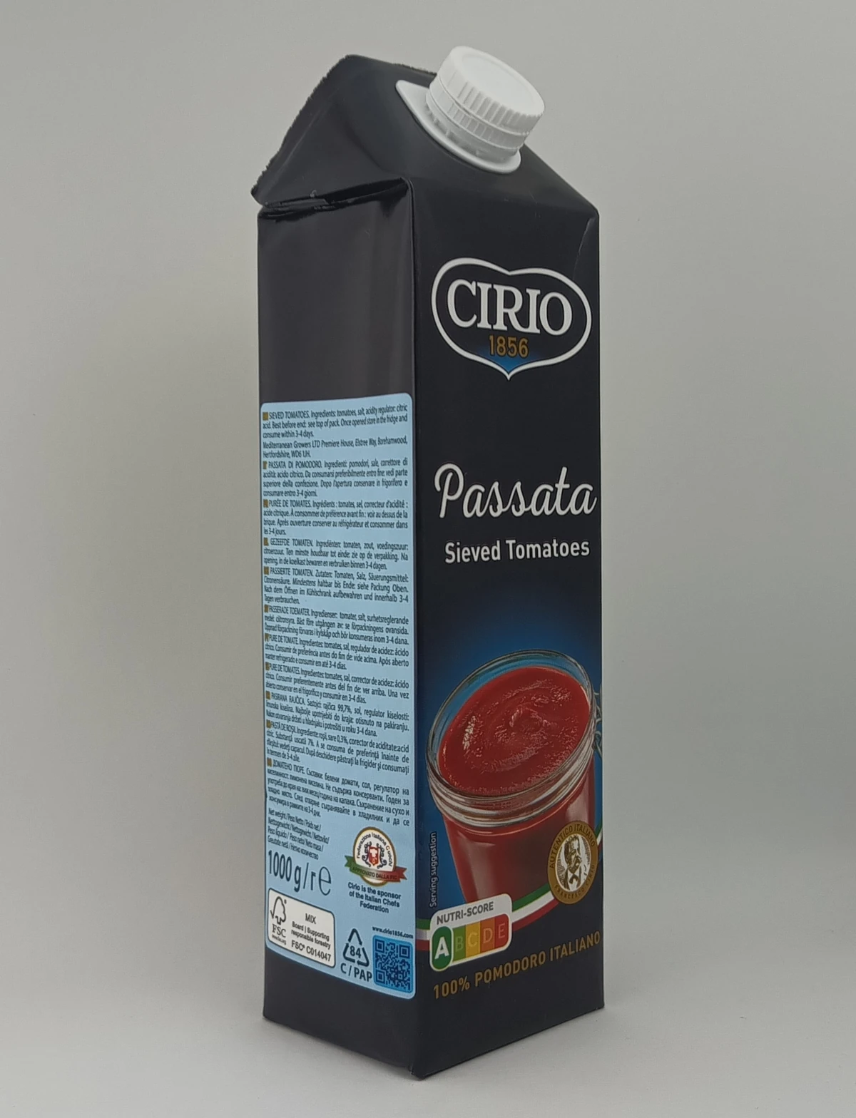 1000 g im Karton, lässt sich einfach wieder Verschließen und sorgt dafür, dass die Passata Rustica lange frisch bleibt.