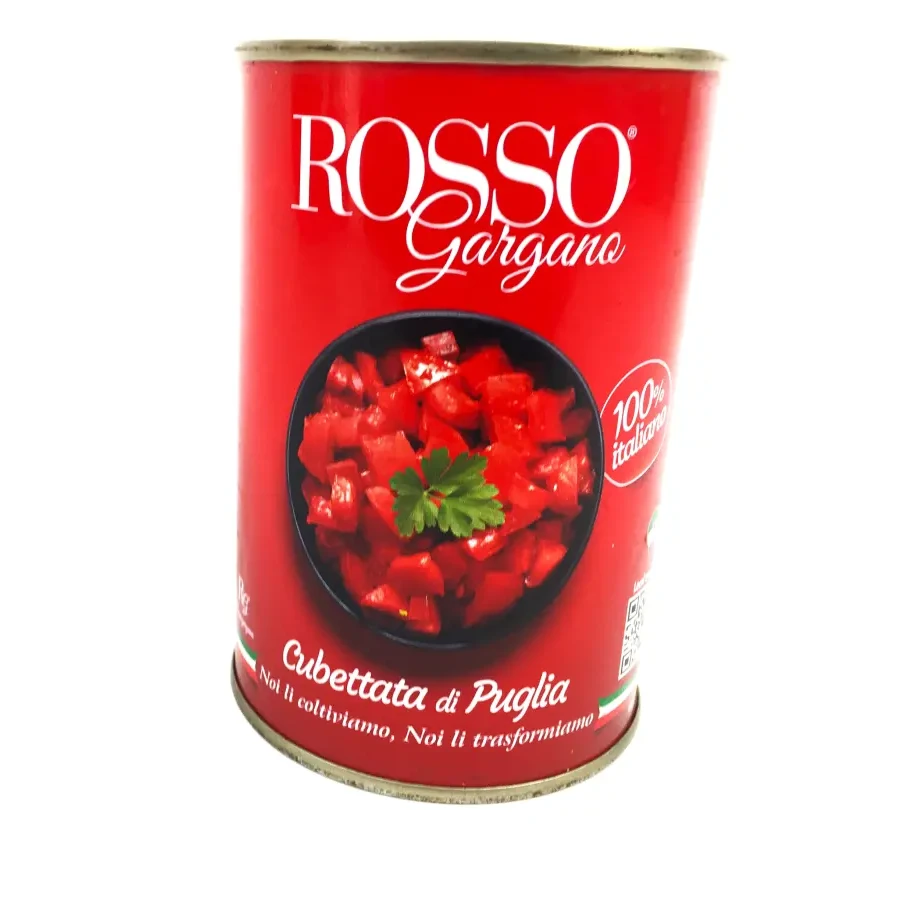 Die Cubettata di Puglia von Rosso Gargano sind erntefrische, in Würfel geschnittene Tomaten, die unter der Sonne Apuliens gereift sind. Ihr fruchtig-intensiver Geschmack und die saftige Konsistenz machen sie zu einer perfekten Basis für Deine mediterranen Lieblingsgerichte.